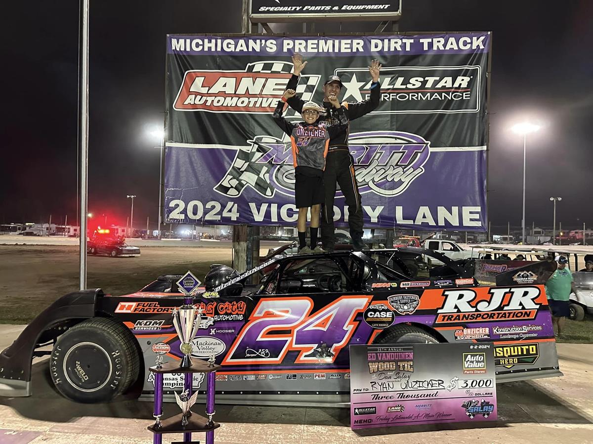 Ryan Unzicker trekked north over the weekend to compete in the 36th annual Ed VanDuinen Wood Tic at Merritt (MI) Speedway aboard his RJR Transportation No. 24 Late Model.